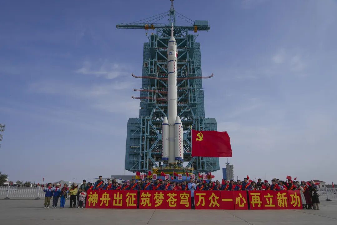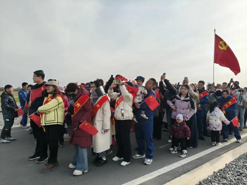 “东风甜不甜?”“甜!”在每一声口号的背后,都是航天人对东风航天城的热爱。不远处,追火箭的爱好者举着相机,镜头里红旗与箭体同框。路两侧展示着包含中国载人航天精神的标语:万无一失,圆满成功;坚决打赢神舟二十一号载人飞行任务决胜仗;向天图强再立新功,航天报国再创辉煌……