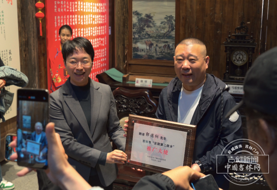 11月6日下午,著名相声表演艺术家郭德纲来到吉林市,在喜(富)连成京剧艺术公园接受吉林市文化广播电视和旅游局授予的“京剧第二故乡”推广大使荣誉证书,以文化交流助力传统艺术传承。